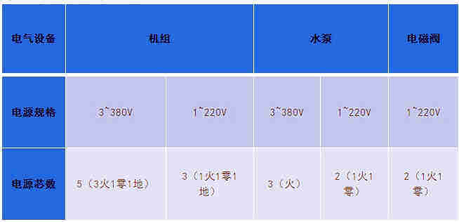 根據(jù)線徑選型,計算出火線線徑,然后根據(jù)設(shè)備電源芯數(shù)來選擇電纜規(guī)格。單相電源的零火線一般為同一規(guī)格,三相電源的零線比火線小1-2個規(guī)格。詳見電線電纜規(guī)格表。